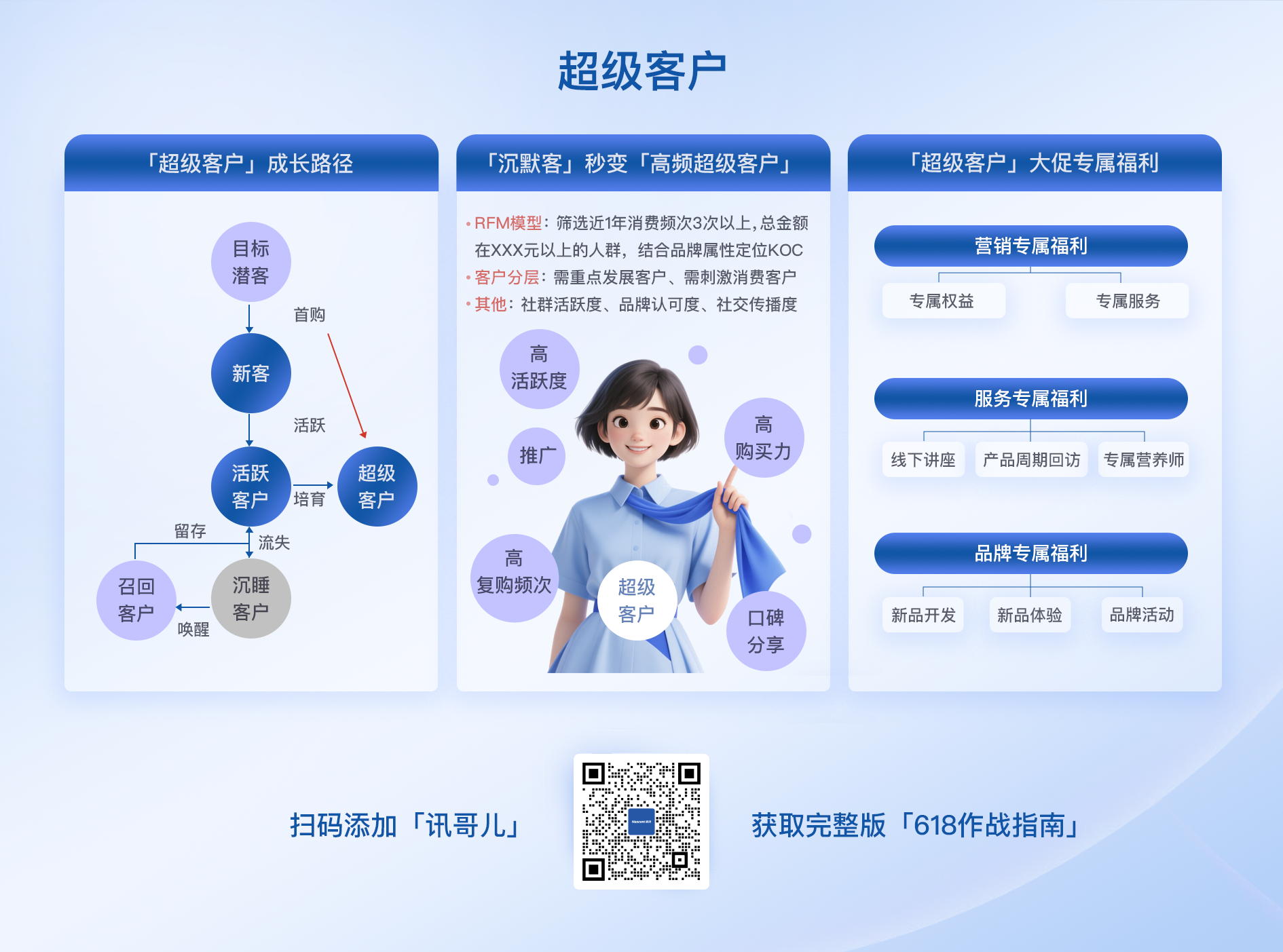 塑造大促超级客户:用户日常要成为超级客户,购物金额需达一定范围。大促期间,品牌可设定只要是回购客户,则自动升级成为「超级客户」,享受与高等级会员相同的权益。